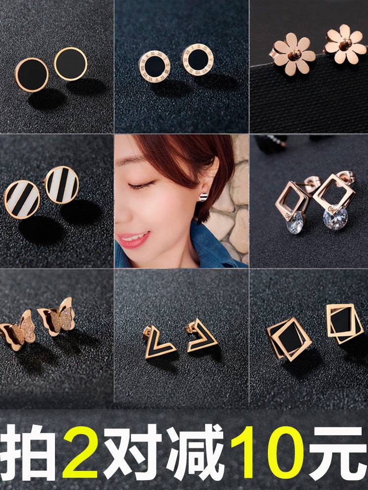 耳钉女2019新款潮网红气质韩国个性钛钢高级设计感小众防敏耳环饰
