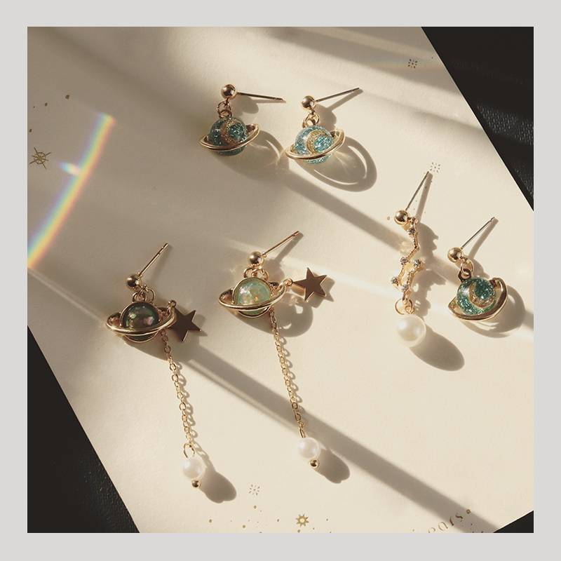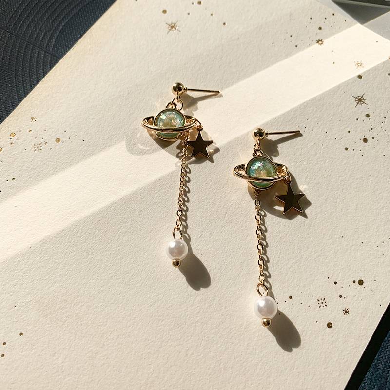 梦幻星球果冻色可爱少女不对称耳钉韩版ins浪漫耳饰女无耳洞耳夹