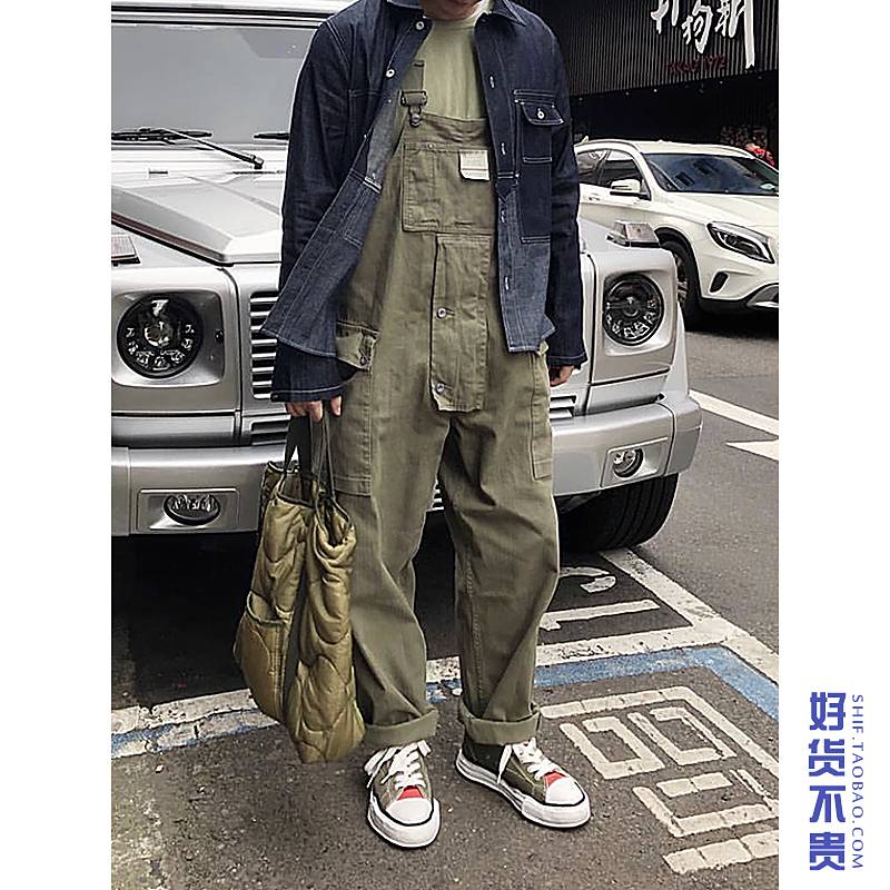 日系潮牌背带裤宽松连体裤工装裤阔腿裤老爹裤ins网红吊带裤男女