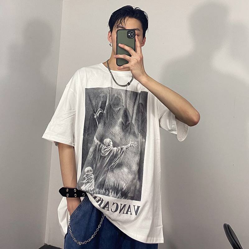 欧美高街潮牌百搭hiphop嘻哈短袖T恤男女ins国潮流暗黑系炸街上衣