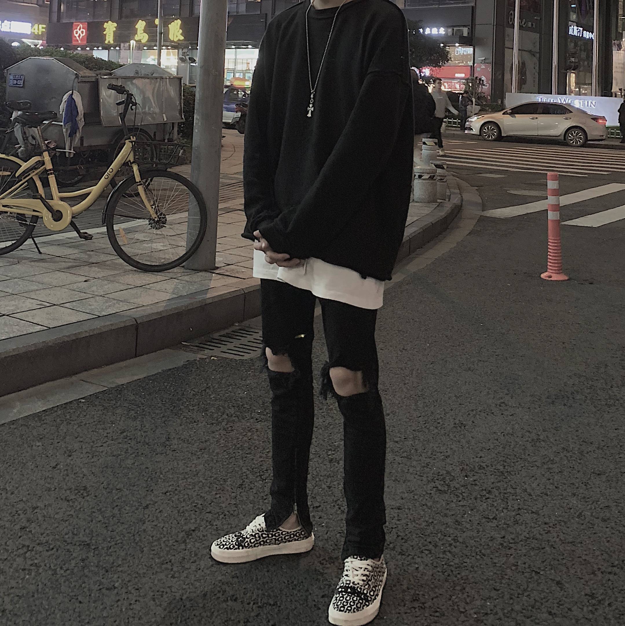 FOG风格复古高街破洞牛仔裤长裤修身小脚牛仔裤男INS牛仔裤潮男