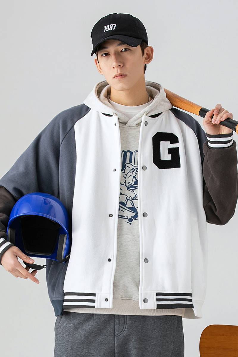 GBOY春秋棒球服男潮牌宽松休闲百搭字母刺绣拼色拼接潮流夹克外套