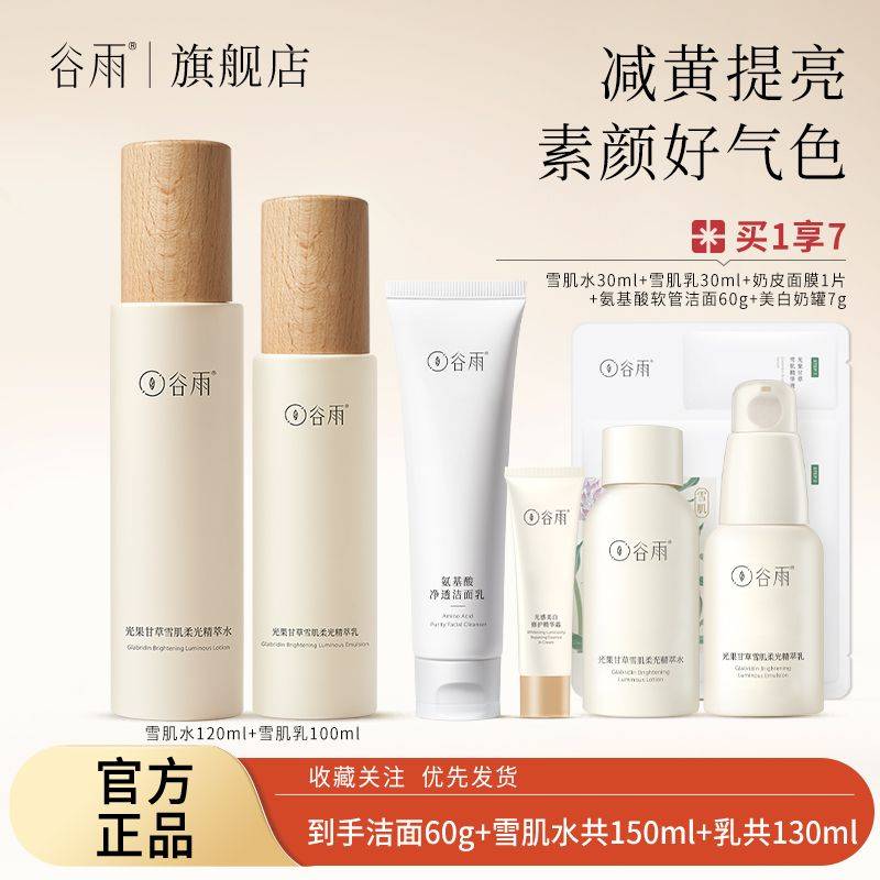 谷雨光果甘草水乳套装雪肌水乳提亮肤色补水保湿干油皮护肤学生