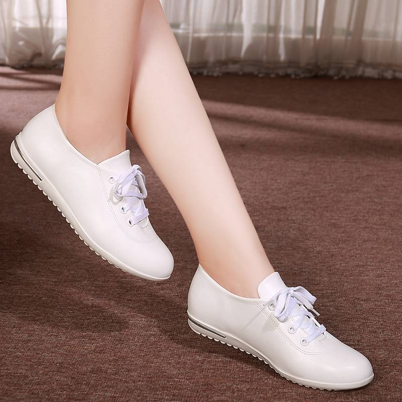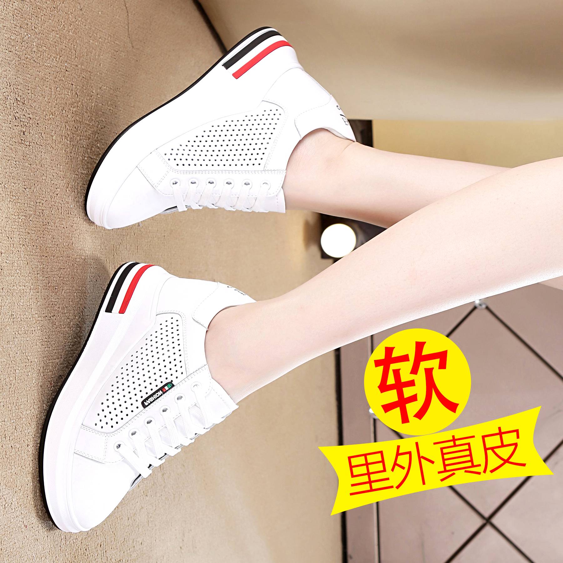 春季内增高女鞋真皮女单鞋休闲鞋小白鞋夏季镂空乐福鞋旅游鞋显瘦