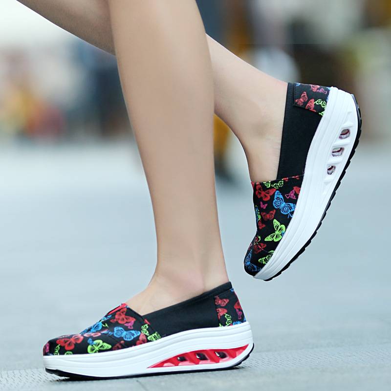 春季新款帆布摇摇鞋女坡跟厚底松糕鞋AC韩版透气女鞋运动旅游鞋