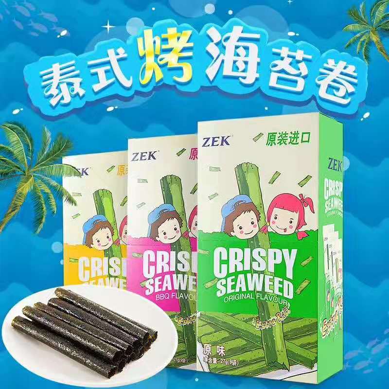 泰国进口儿童即食海苔卷27g 9小袋原味海鲜烧烤多口味休闲零食 29.00 已售:0件