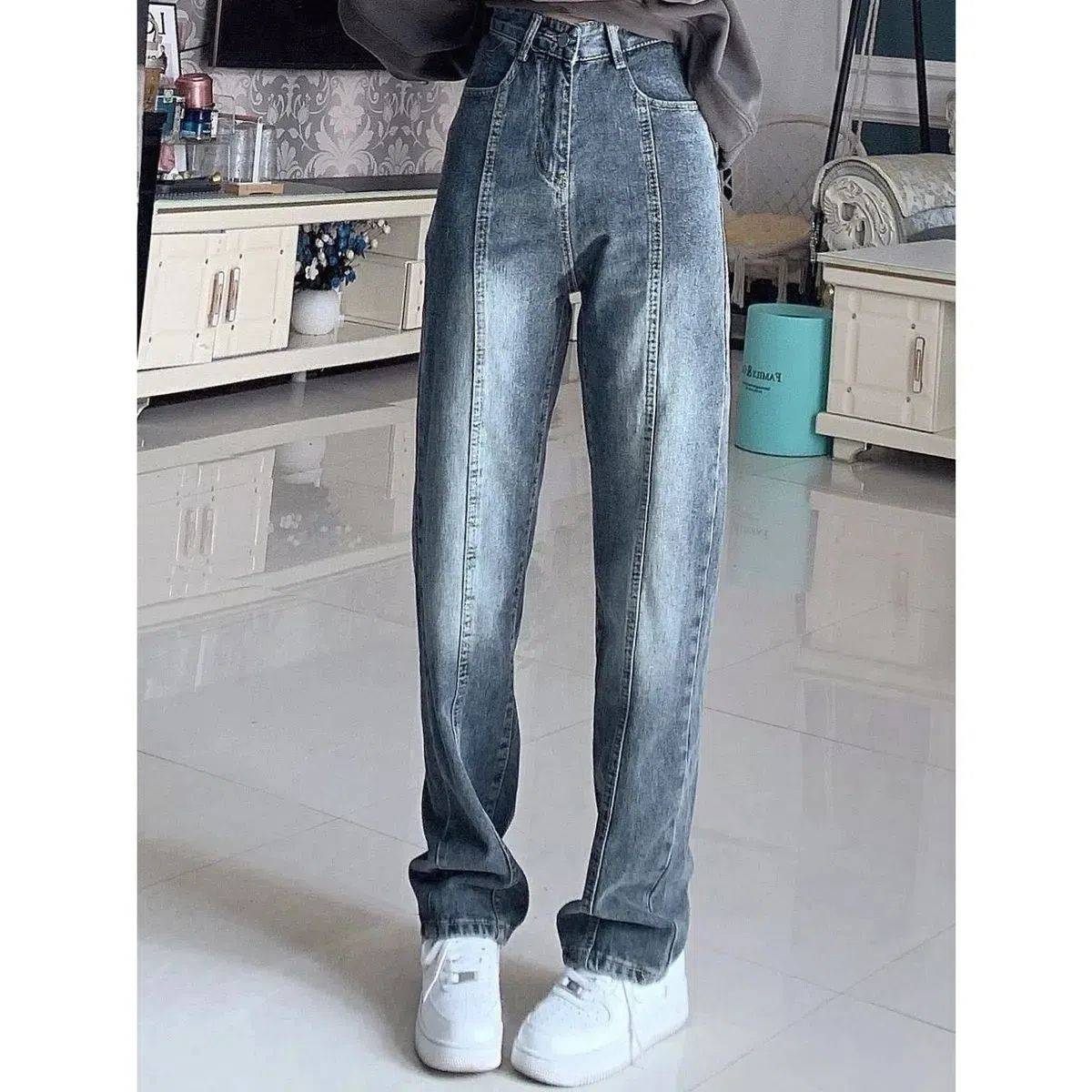 复古高腰阔腿牛仔裤女春秋高街设计感小众甜辣直筒拖地裤子潮ins
