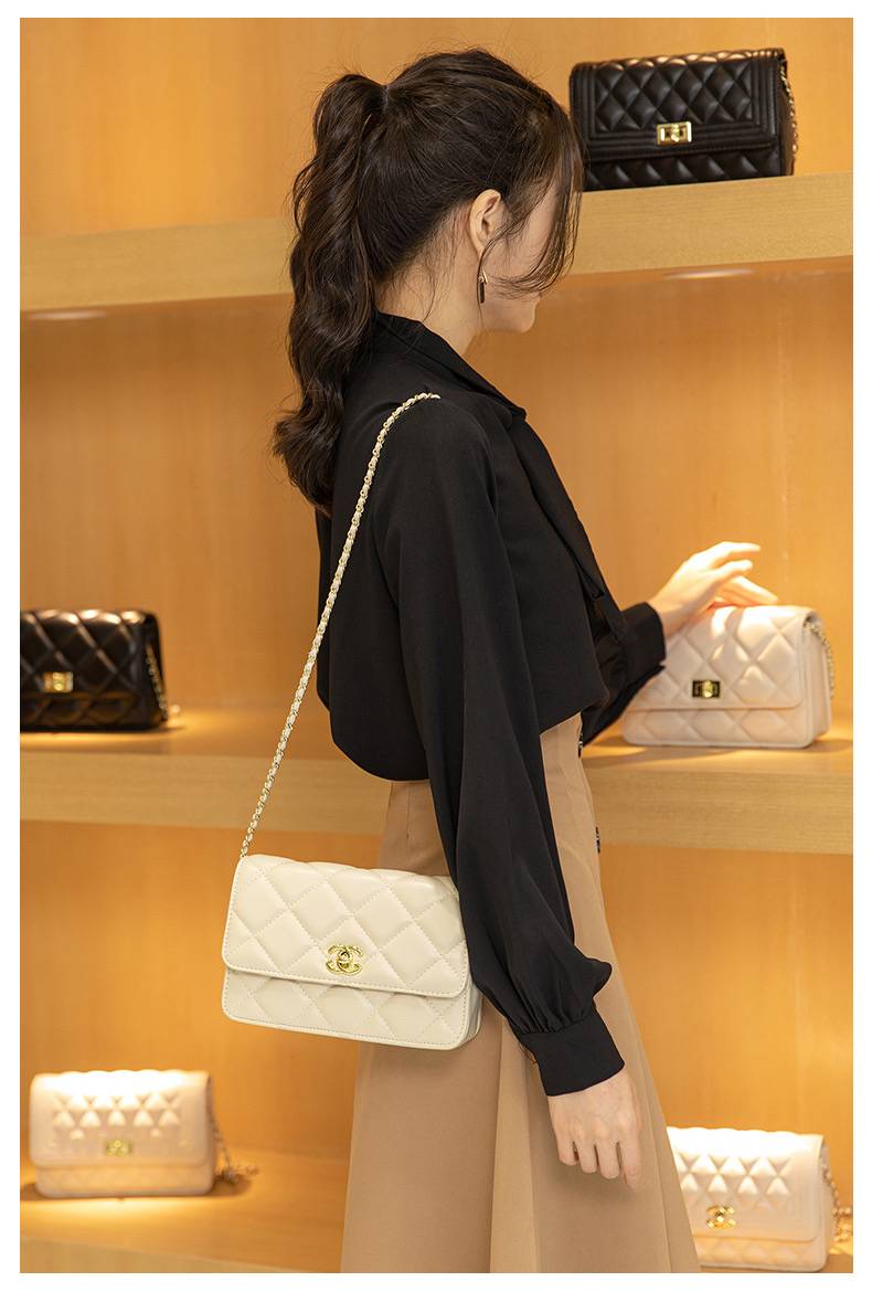 香纳尔真皮女包2023新款潮羊皮斜挎包中包菱格链条包包原创设计包