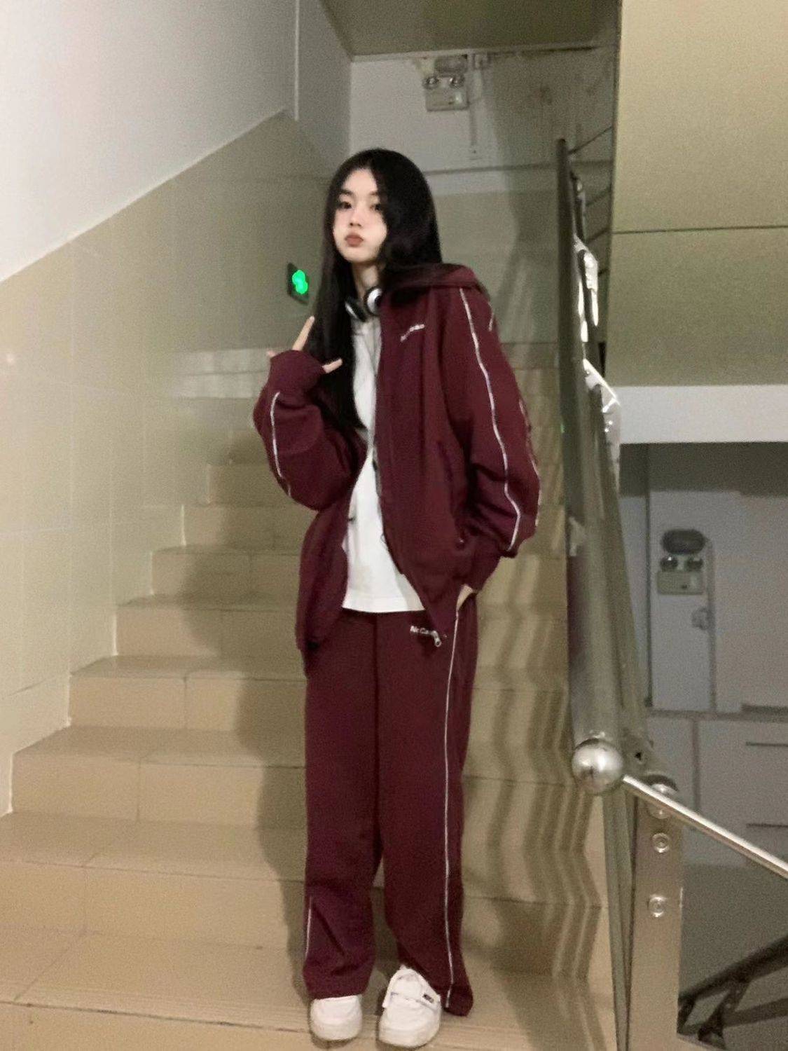 休闲运动服套装女薄款ins国潮牌美式复古chic港味卫衣长裤两件套