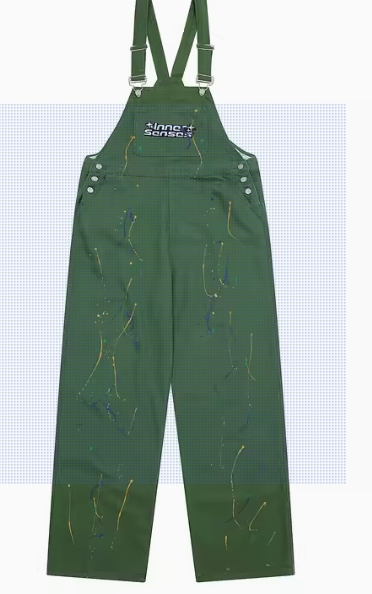 GXFortune 美式复古街头风绿色涂鸦喷漆印花背带裤男女宽松牛仔裤