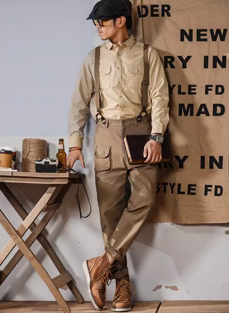坤牌工装背带裤男春秋新款美式宽松休闲连体裤复古英伦风男士吊带裤子