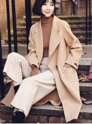 韩都衣舍2018冬装新款女装韩版全羊毛双面呢大衣毛呢外套NH9923煜