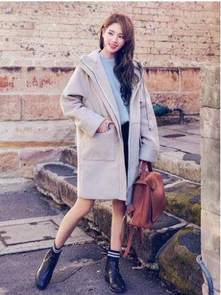 韩都衣舍2018冬装新款女装韩版小个子中长款大衣毛呢外套IG8180僥