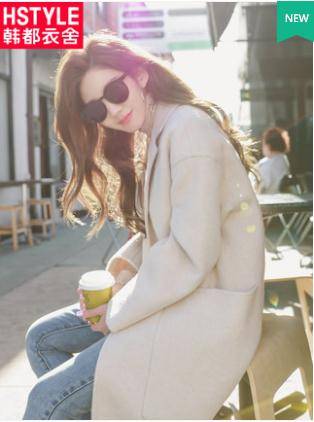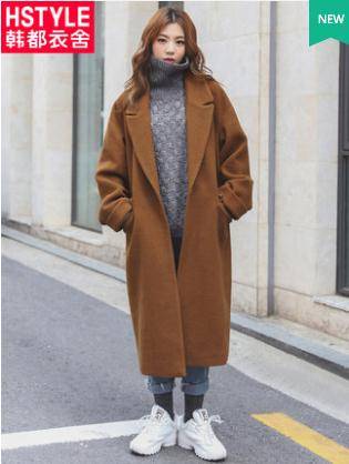 韩都衣舍2018韩版女装冬装新款潮chic慵懒风长毛呢外套AA12087玎
