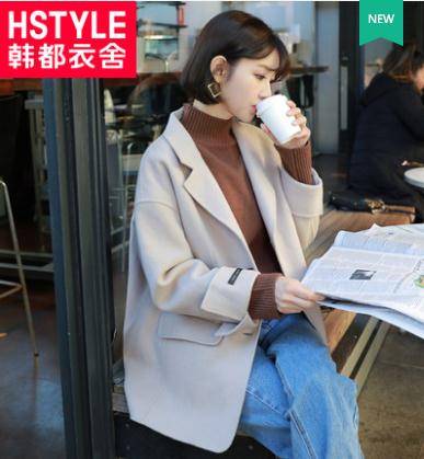 韩都衣舍2018冬装新款女装韩版学生短款羊毛大衣毛呢外套GQ9748耒