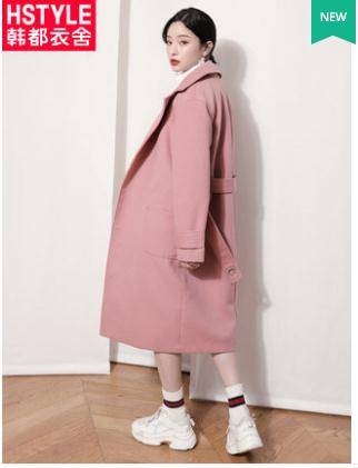 韩都衣舍2018韩版女装冬装新款翻领长款宽松chic毛呢外套PC8452晽