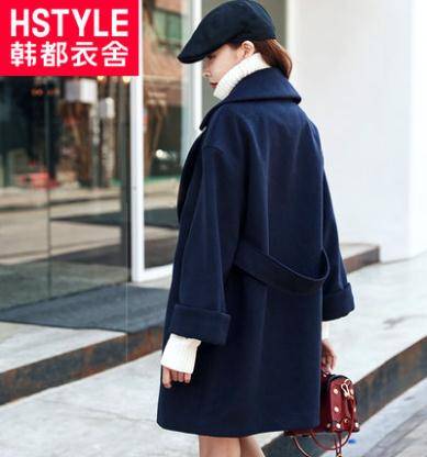 韩都衣舍2018新款冬装女装韩版学生中长款毛呢外套大衣OU11003.堯