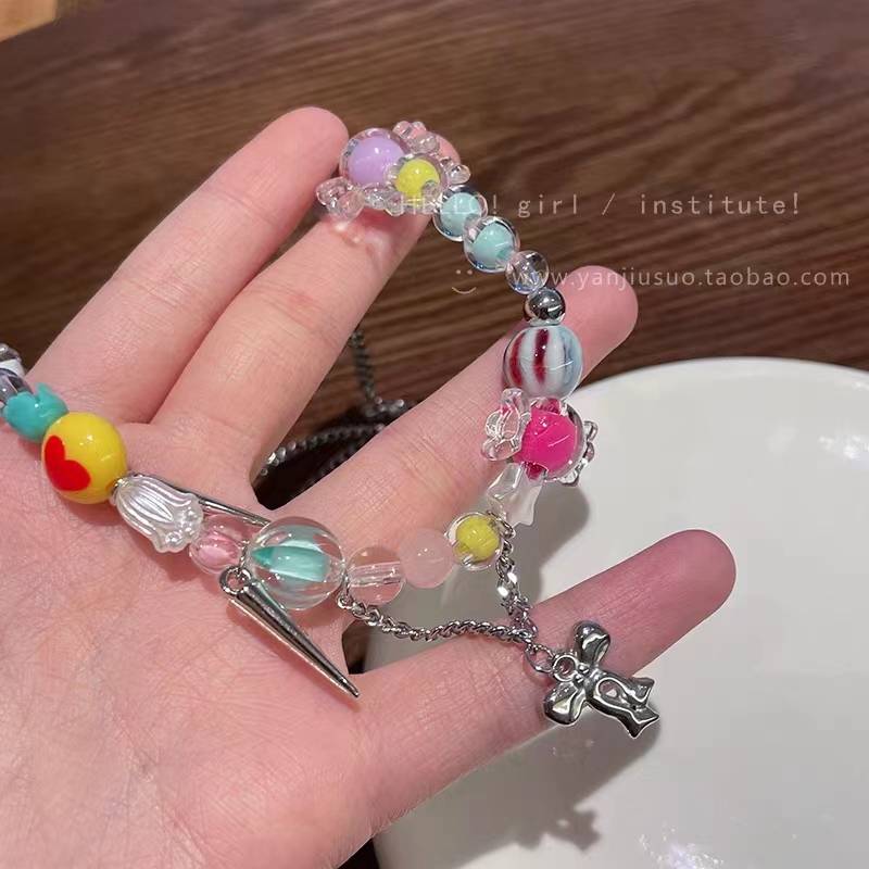 私藏!敲适合夏天滴彩虹糖果项链女小众配饰网红甜酷辣妹锁骨链潮