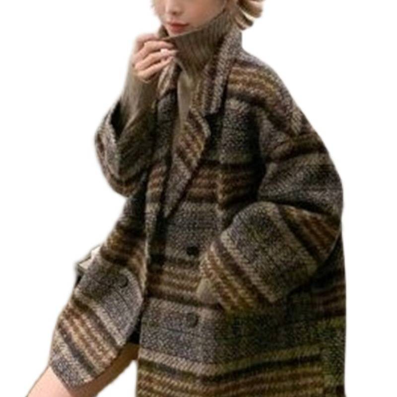 秋冬季新款韩版流行小个子格子粗花呢中长款大衣西装外套女