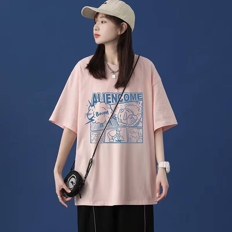 夏季薄款冰丝短袖2025T恤新款时尚宽松百搭烫金印花圆领上衣