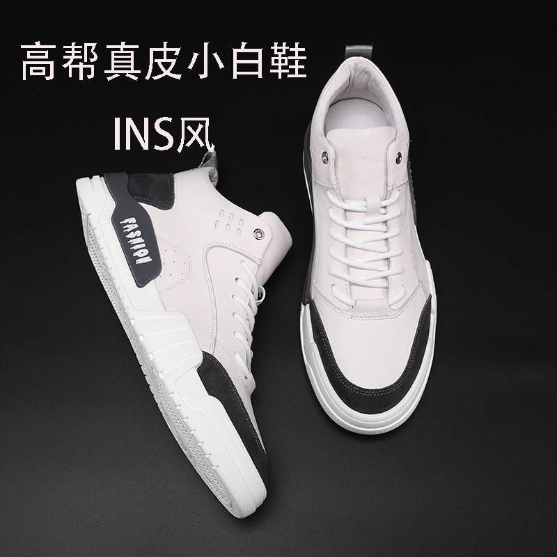 欧洲站潮男高帮鞋白色真皮春夏新款运动小白鞋韩版百搭高邦板鞋男