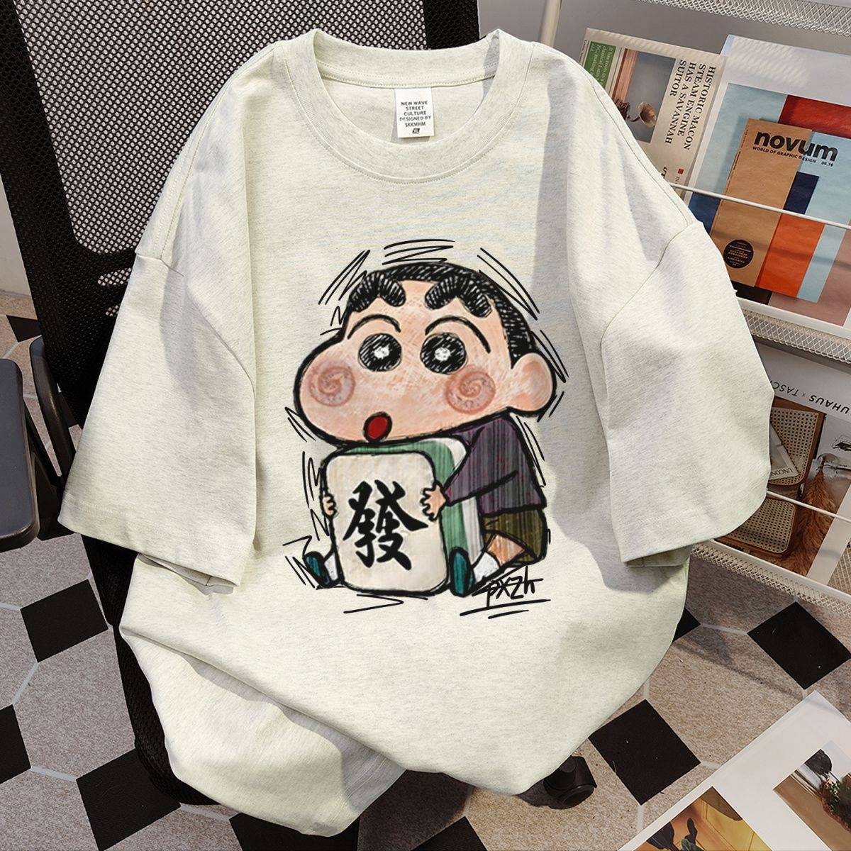 老虎竹子发泡印花短袖T恤男士打底衫潮牌情侣休闲上衣