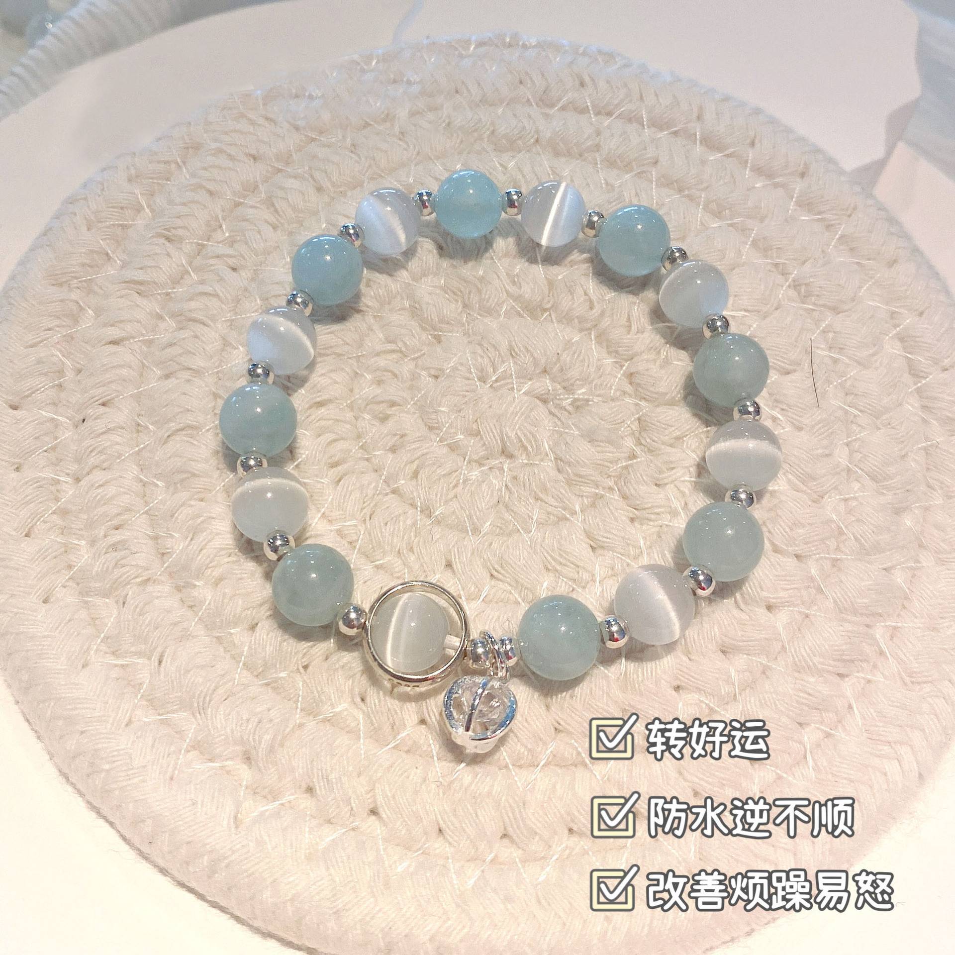 推荐 原创设计海蓝宝猫眼石水晶手链纯银配饰不掉色夏天女手串
