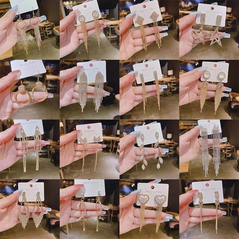 925银针大气直播跨境网红气质耳环欧美时尚夸张水钻长款流苏耳饰
