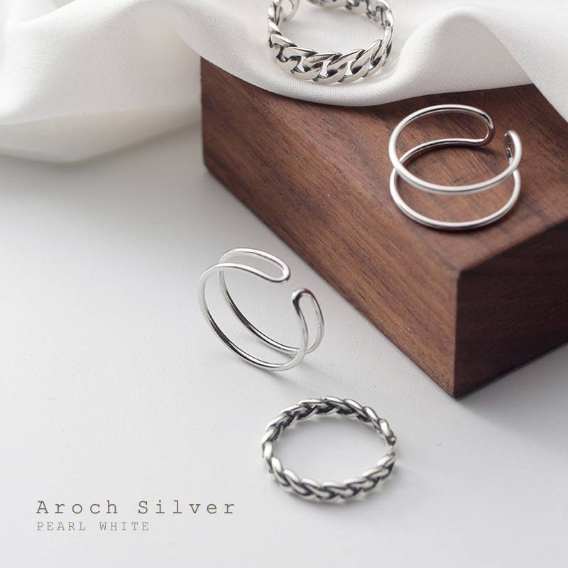 爱洛奇 s925银女韩版时尚简约光面指环组合搭配开口麻花戒指J7036