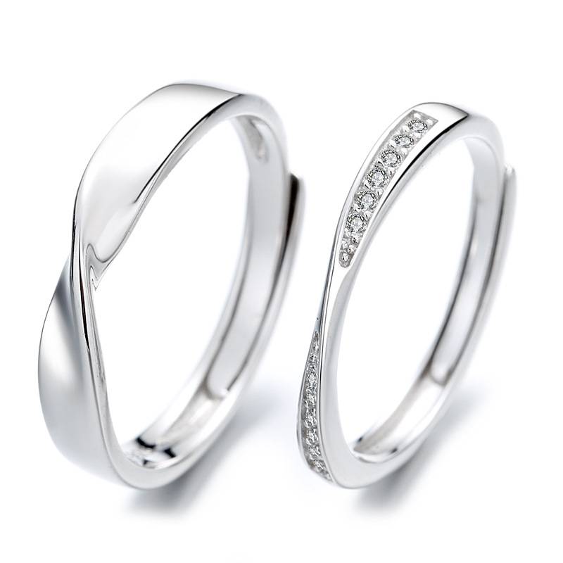 S925银 莫比乌斯情侣对戒 镶钻扭纹情人节戒指 520生日礼物批发女