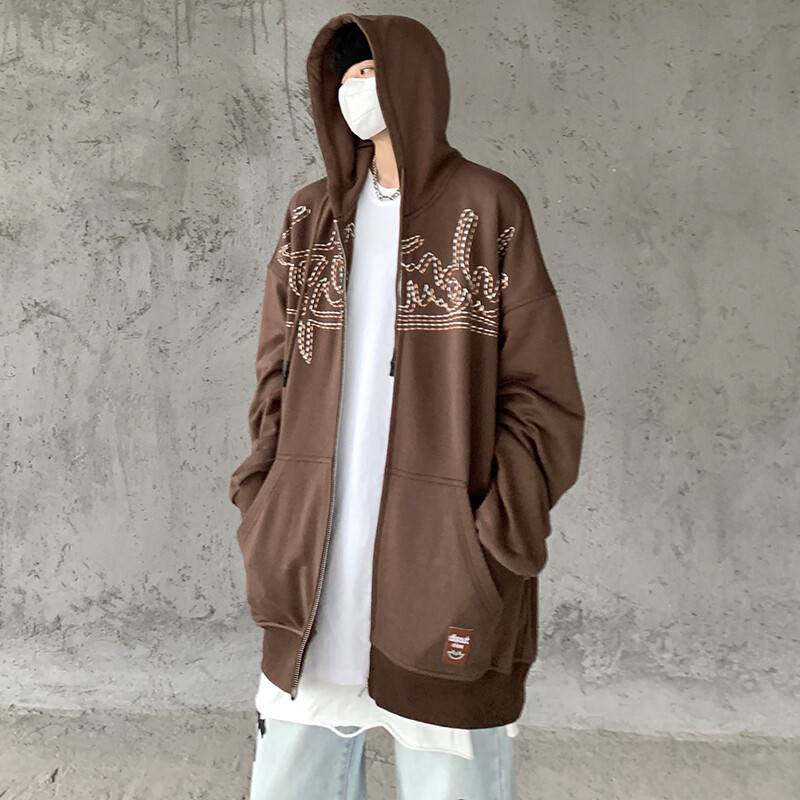 专帅西海岸hiphop棕咖色卫衣美式高街男oversize欧美复古外套潮