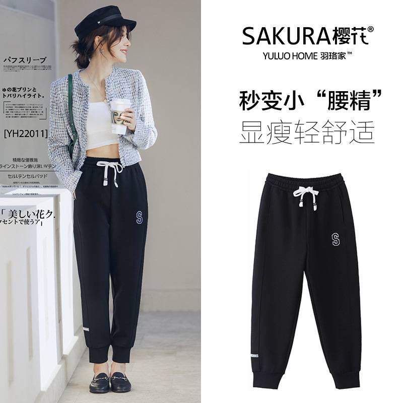 2022春夏季休闲裤女新款高腰松紧束脚宽松显瘦弹力运动哈伦九分裤