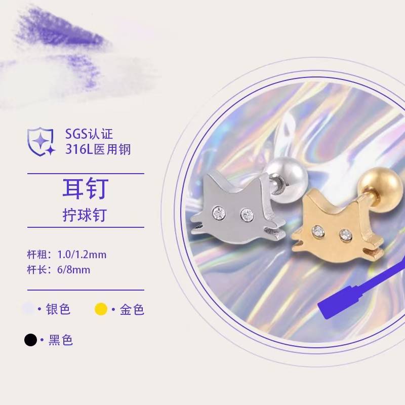 耳钉直钉爆闪钛钢亚文化小狗爪子内螺纹钉子钻饰品养耳设计感