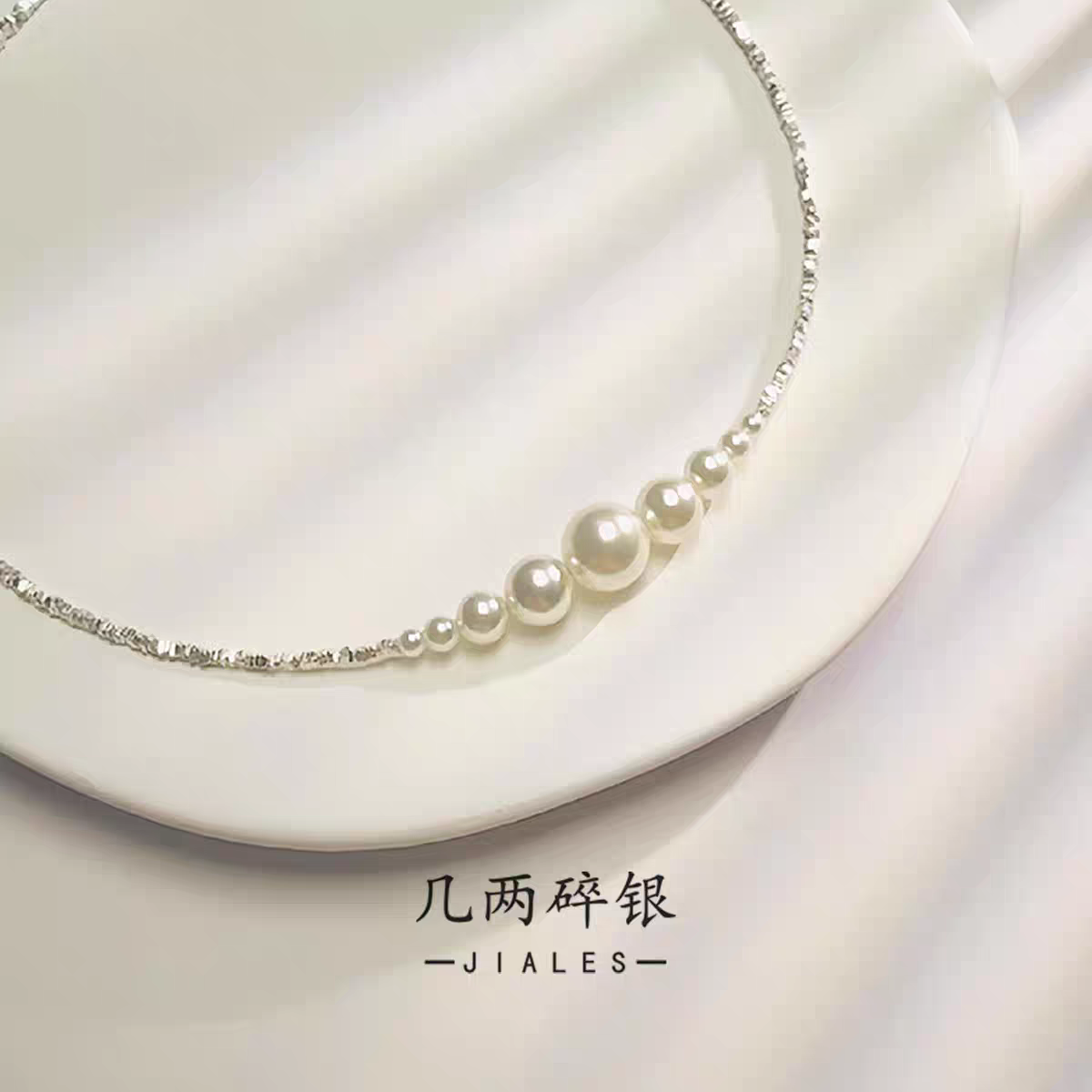 9999纯银饰品项链精致微笑碎银年轻款珍珠衣服配饰穿搭女士项链