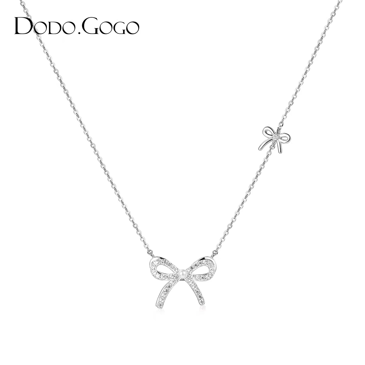 粉色蝴蝶结项链轻奢925银小众锁骨链甜美高级感女款颈链