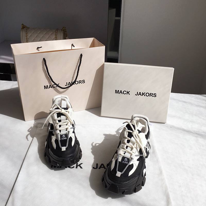 MackJakors真皮黑色厚底老爹鞋女2022年夏季新款小个子百搭运动鞋 358.00 已售:0件