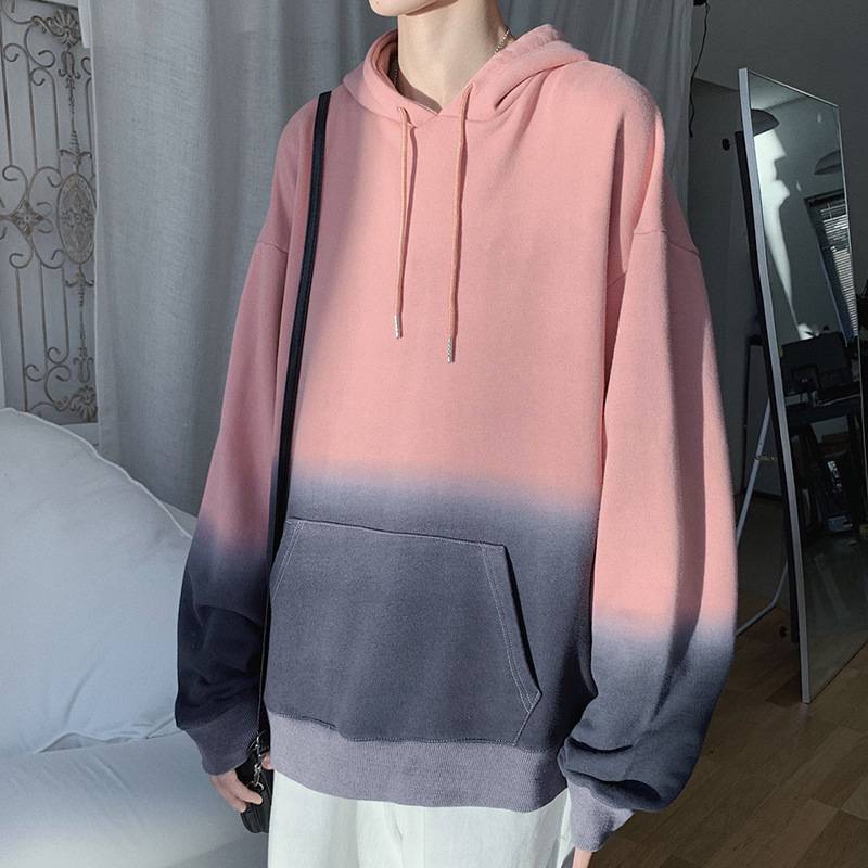 春季新款日系休闲男士渐变色卫衣宽松连帽打底套头衫青年时尚上衣