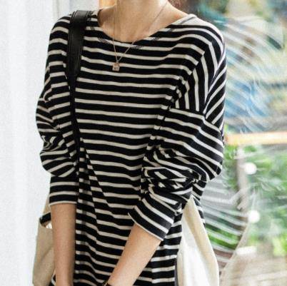 笑涵阁 早秋上衣慵懒海魂衫造型开衩显瘦棉条纹卫衣 XYG480632AG
