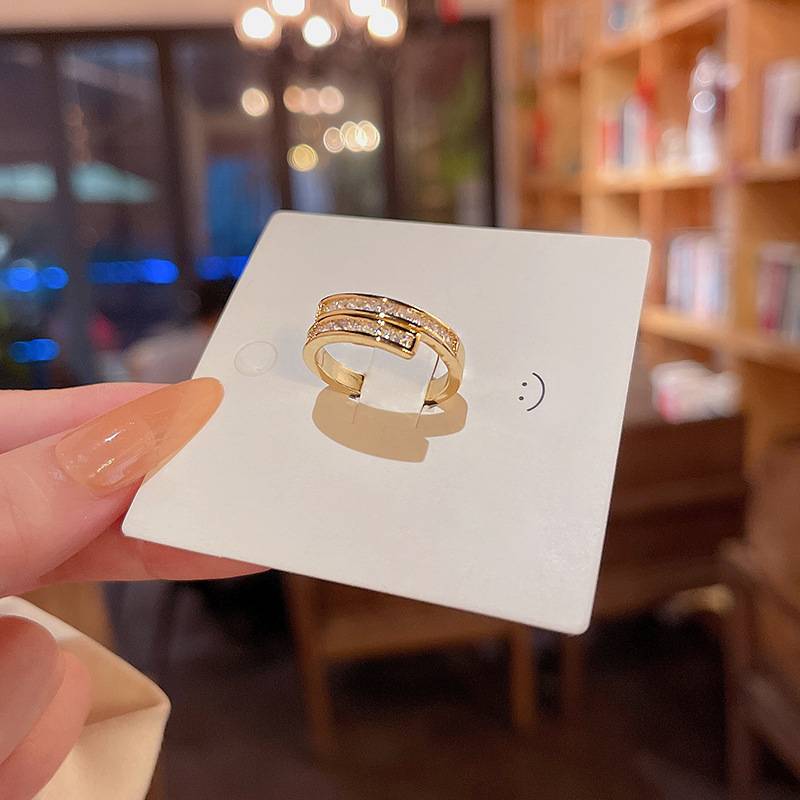 韩国新款双层精致锆石戒指女轻奢小众简约开口可调节食指戒指环女