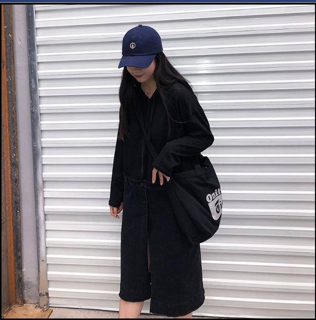 李潇洒胖mm 黑色拼接牛仔裙显瘦百搭大码女抽绳帽衫