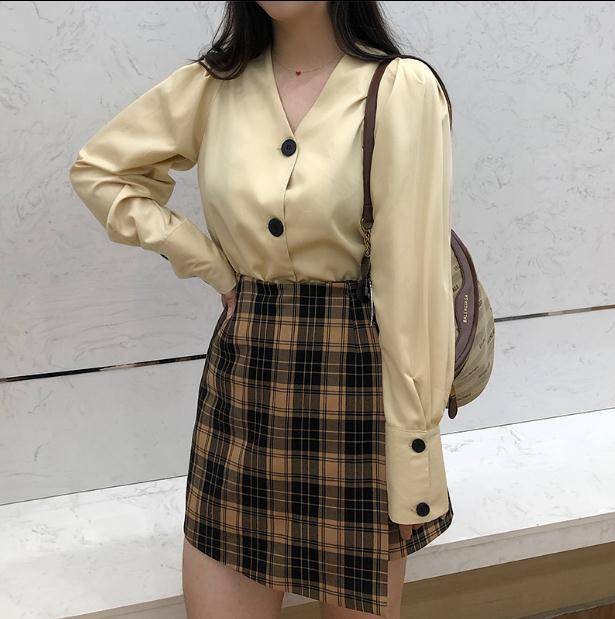 李潇洒胖mm复古宫廷风衬衫 遮胳膊肉泡泡袖大码女V领长袖衬衫