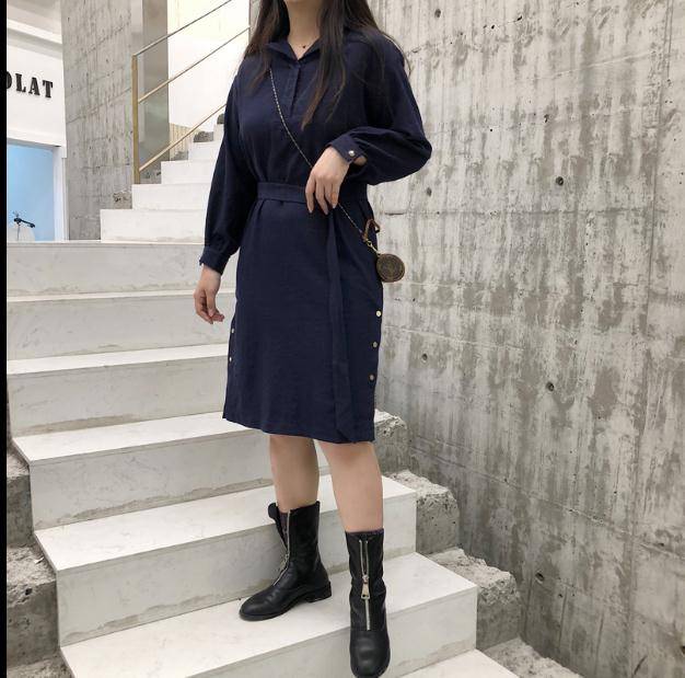 打底连衣裙不挑身材 系带下摆开叉 大码设计款连衣裙