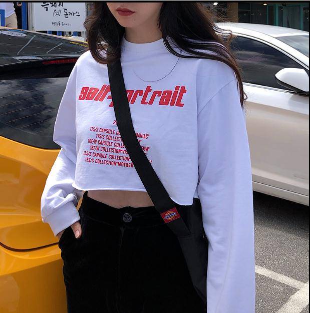 字母印花卫衣女短款显瘦长袖秋装韩版个性百搭露脐上衣