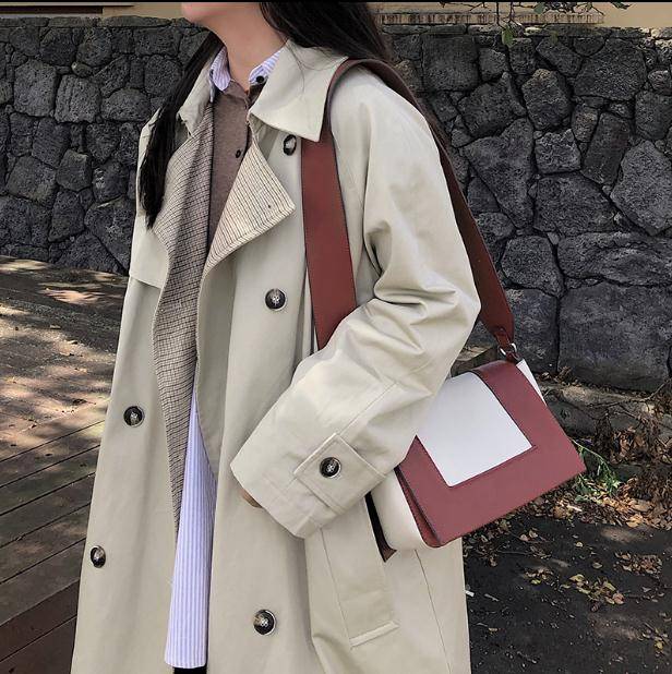 假两件宽松长款风衣外套双排扣实穿百搭