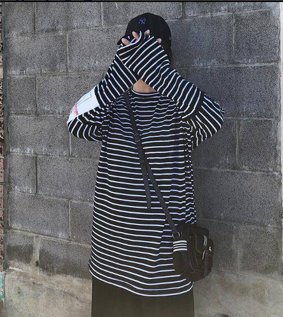贴布设计条纹打底T恤女长袖圆领宽松百搭显瘦上衣秋