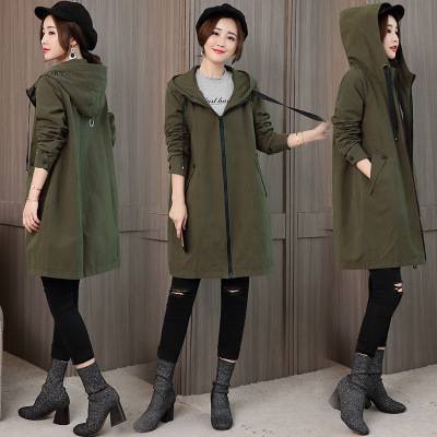风衣女中长款春秋季2018新款韩版休闲女装宽松百搭连帽风衣外套女
