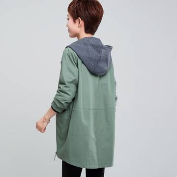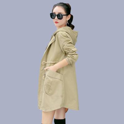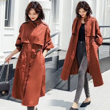 秋季新款韩版都市休闲2018女装风衣 纯色加长款直筒型抽绳外套