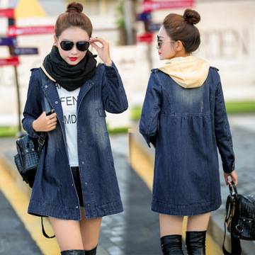 牛仔风衣女中长款韩版2018新款春秋季长袖宽松百搭大衣外套女装潮