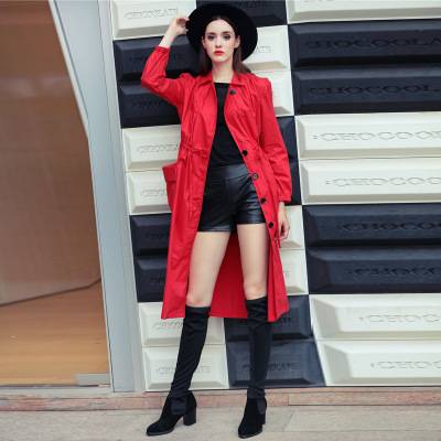 2018欧洲站春季新款女装时尚中长款系带收腰风衣休闲外套