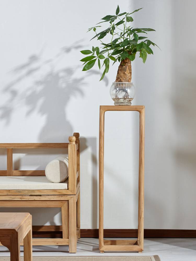 老榆木花架实木新中式客厅落地免漆简约边几角几原木茶室禅意家具